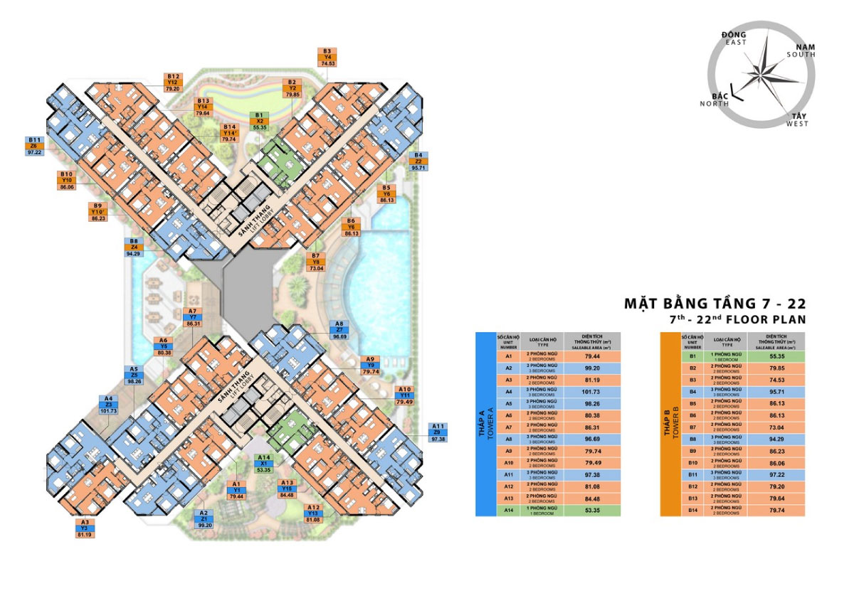| Loại hình căn hộ | 1PN – 4PN (Diện tích 30m² – 174m²) |